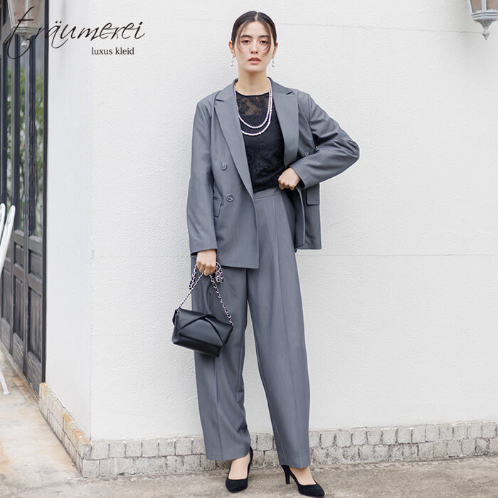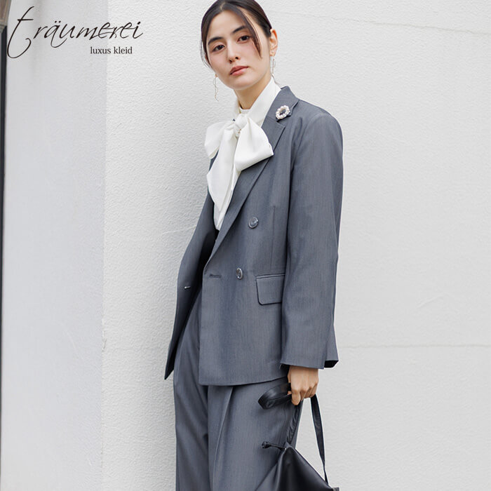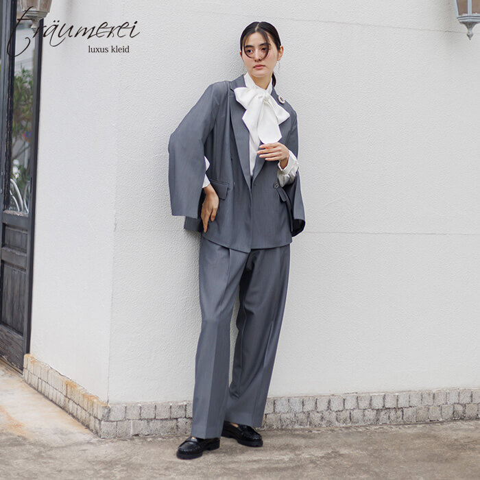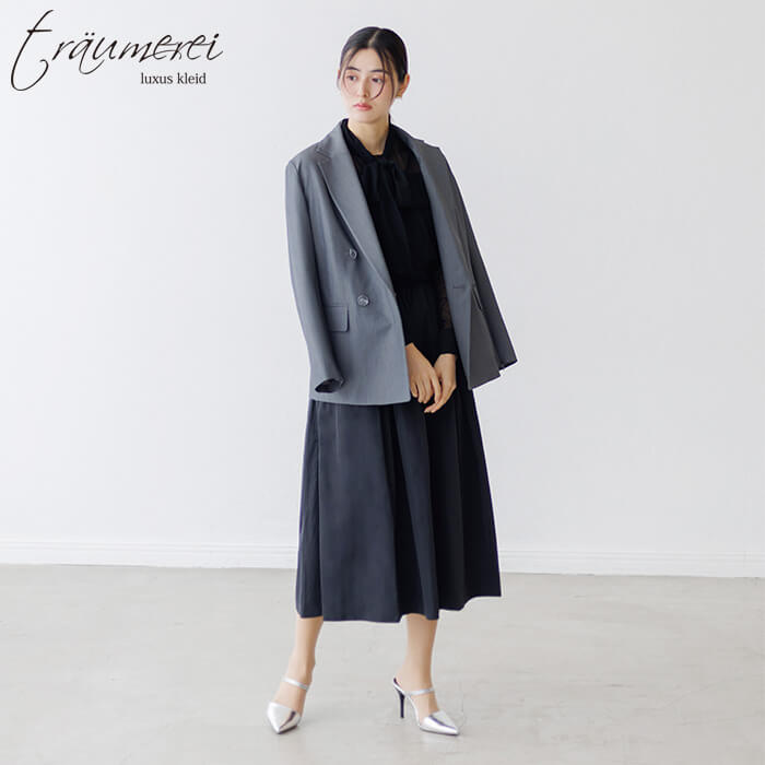 ハリのある風合いと程よい光沢感が特徴の、セレモニーやオフィスにもふさわしい上品なギャバ素材を使用。柔らかく伸びて戻るストレッチ性で、長時間の着用でもシワになりにくい素材を使用しています。