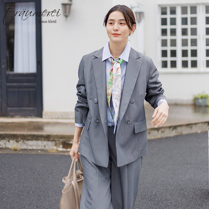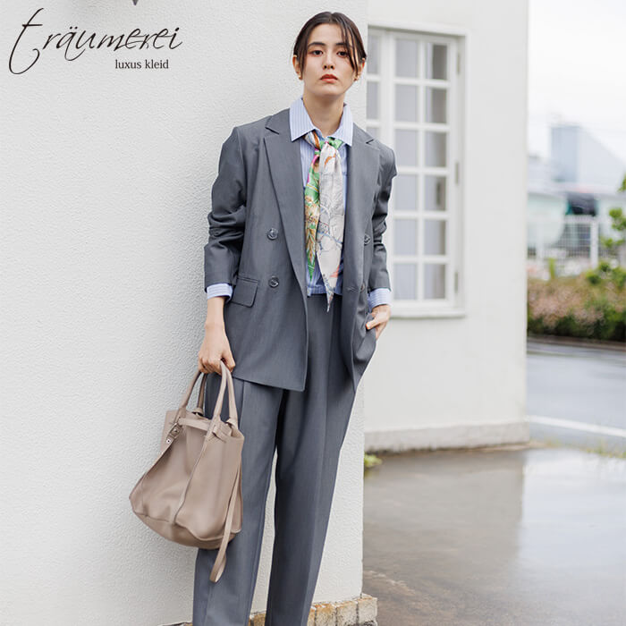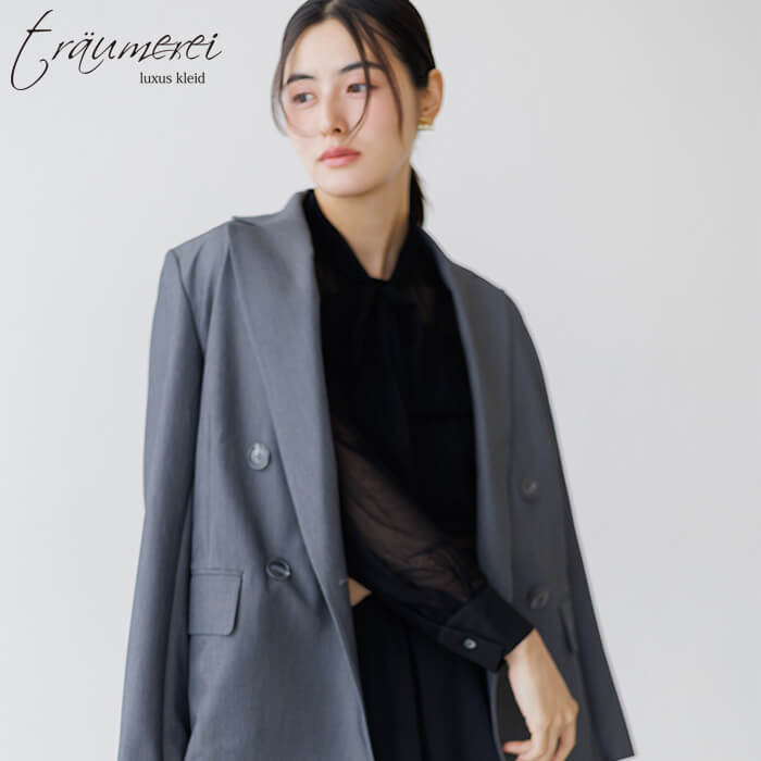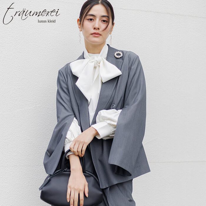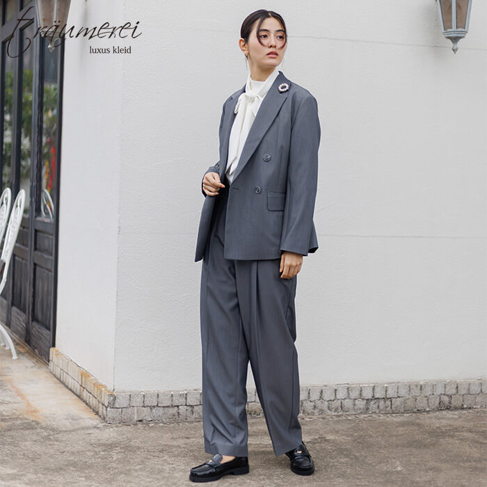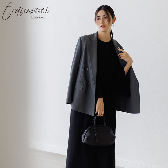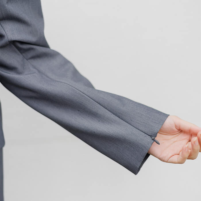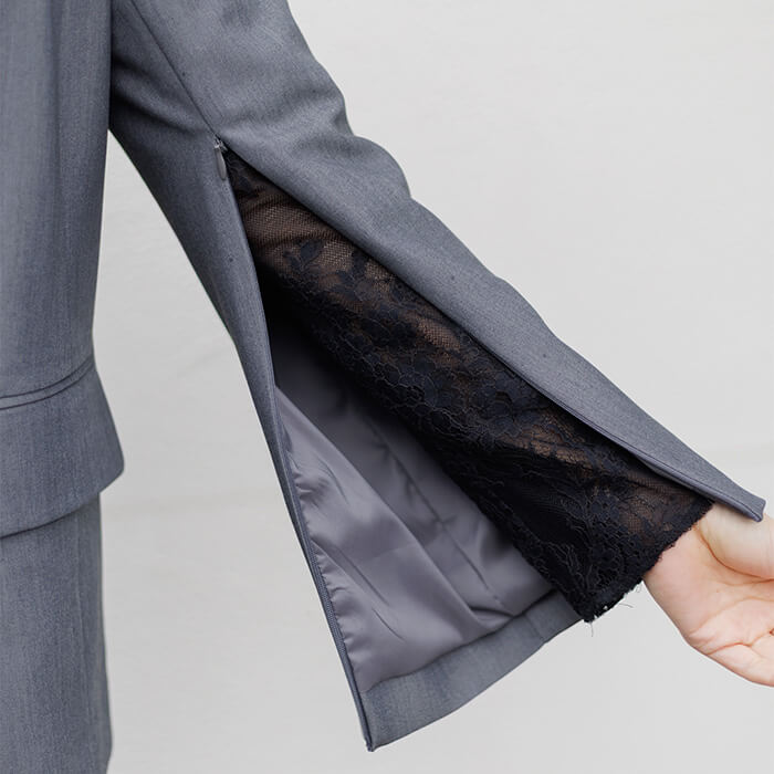 結婚式やパーティーだけじゃなく、仕事の日や少し特別なお出かけにも。気負わず羽織れて、きちんと見える。そんなオーバーサイズジャケットです。袖口のスリットはファスナーで調整できる仕様。華やかにも、シンプルにも雰囲気を変えられるので、シーンに合わせて着こなしを楽しめます。シルエットはゆったりめ。ほどよい抜け感がありつつ、ヒップにかかる着丈で気になる部分はそっとカバー。パンツにもスカートにも合わせやすく、手持ちの服となじむバランスに仕上げました。