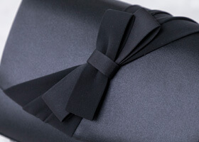 キーワードである陰影のコントラストを意識した、立体的ない素材使いのリボンモチーフ。