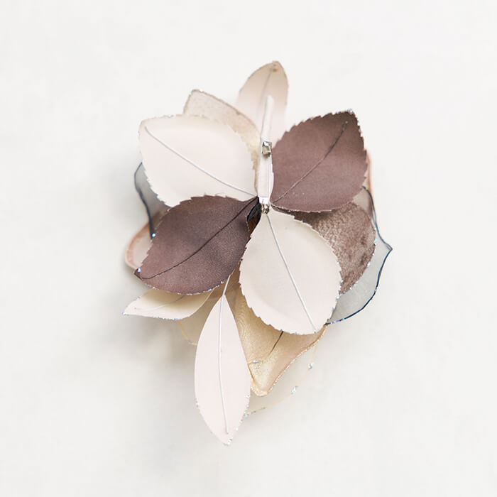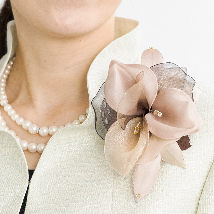 百合のような洗練された雰囲気のコサージュ。