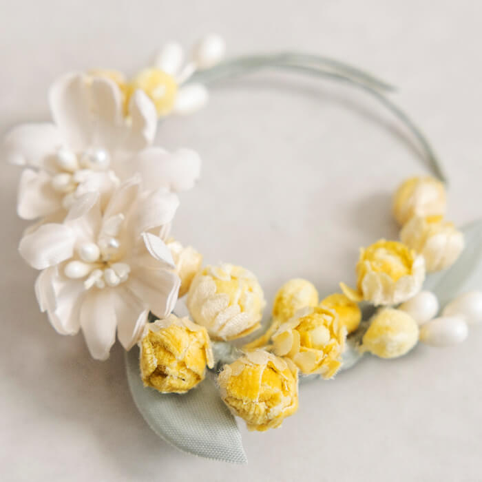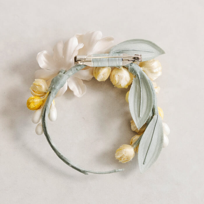 ”時とともに色褪せ朽ちてもますます愛される花飾り”を永遠のテーマに、 オリジナリティあふれるコスチュームアクセサリーを制作し続ける 「アトリエ染花」とのコラボレーションコサージュ。