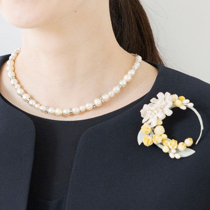 繊細な造形とアンティークな色合いを胸元に添えて…
