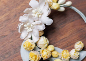 「感謝」と「思いやり」の花言葉を持つミモザは、 新しい旅立ちにふさわしい幸せあふれるモチーフ。