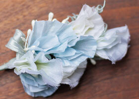 ”時とともに色褪せ朽ちてもますます愛される花飾り”を永遠のテーマに、 オリジナリティあふれるコスチュームアクセサリーを制作し続ける 「アトリエ染花」とのコラボレーションコサージュ。