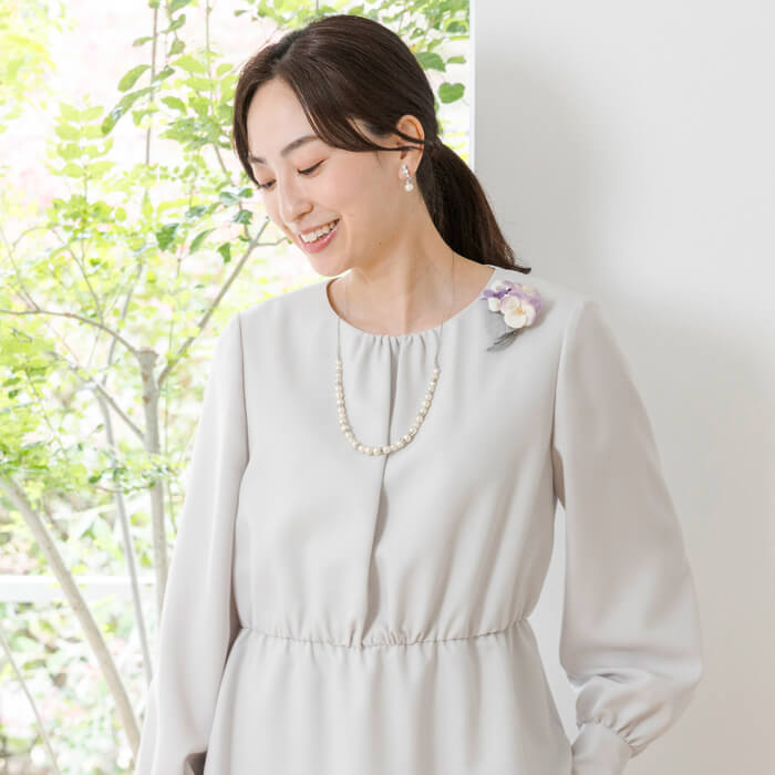 繊細な造形とアンティークな色合いを胸元に添えて…