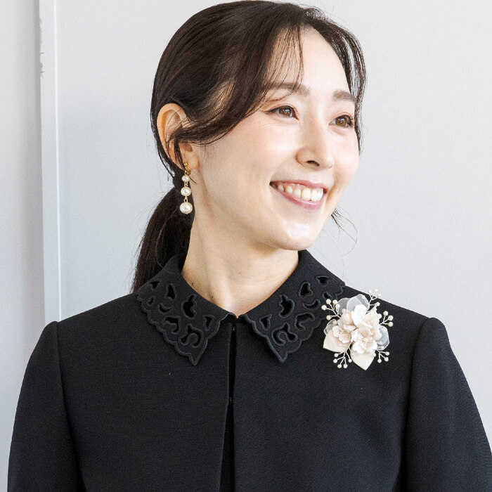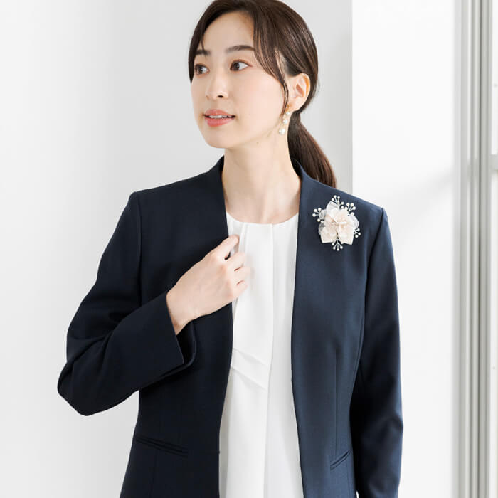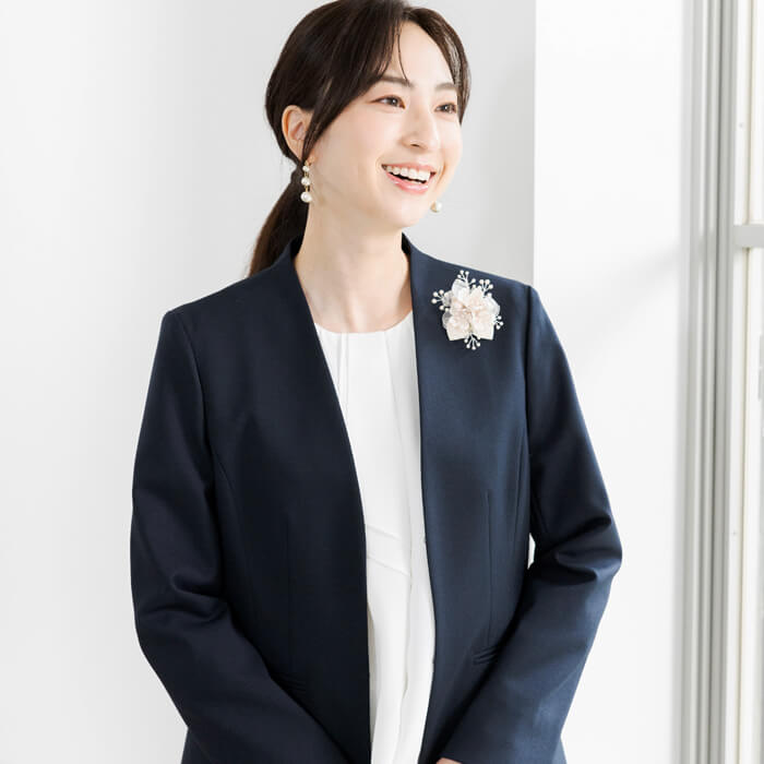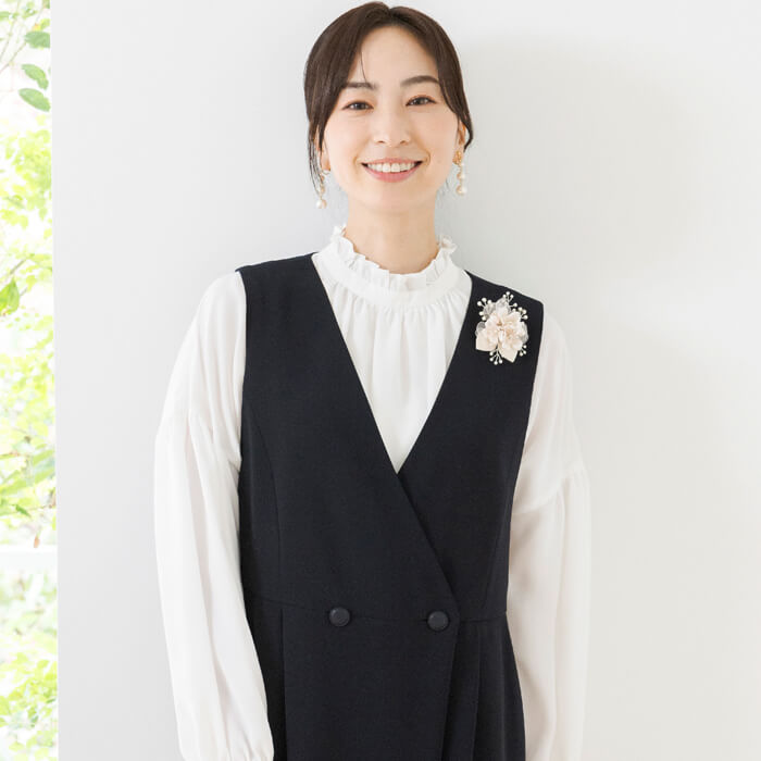 明るく柔らかな印象を添え、フォーマルシーンにぴったりの華やぎを与えてくれます。