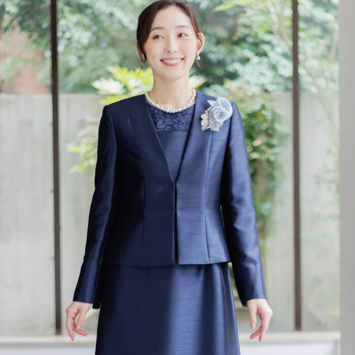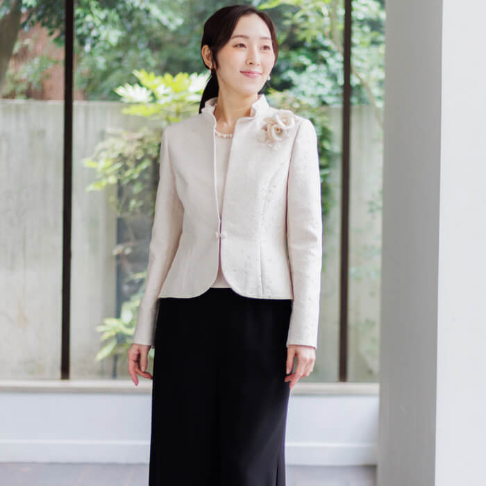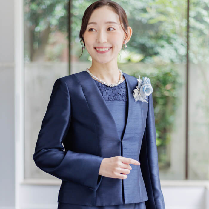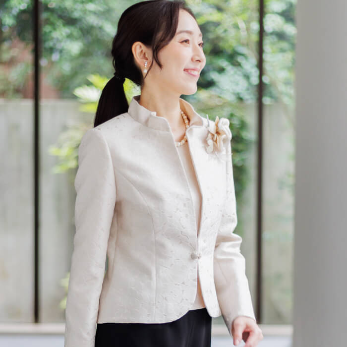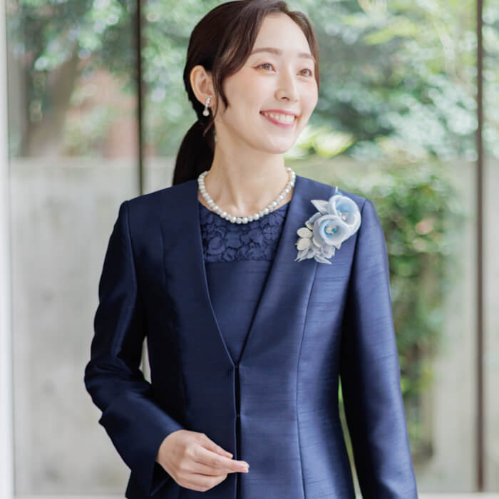 フォーマルの装いに、ほどよいやわらかさを添えてくれます。