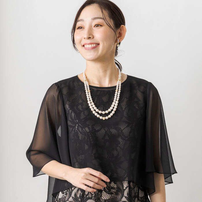 装いをクラスアップしてくれる、華やかデザインのネックレスです。