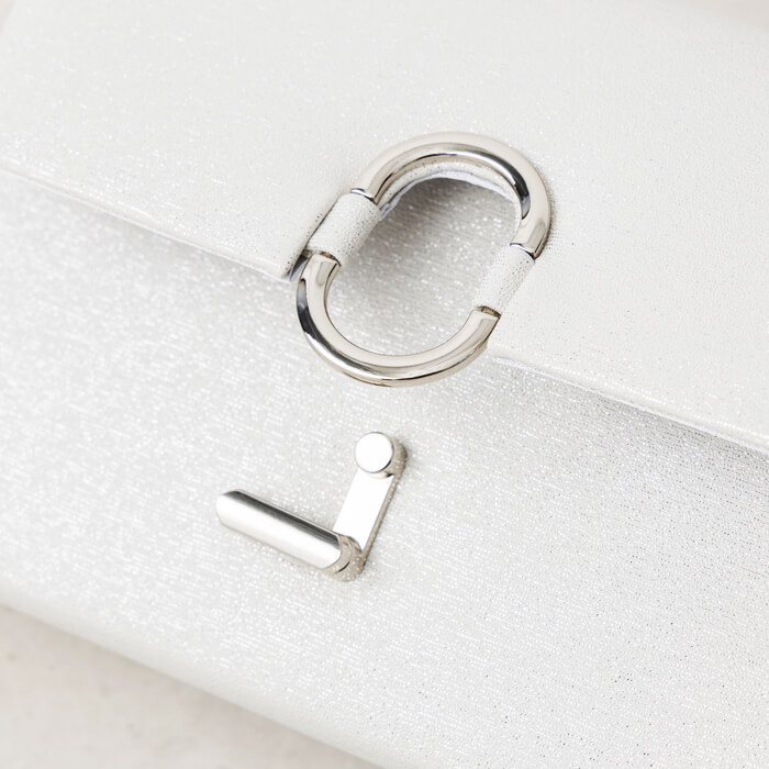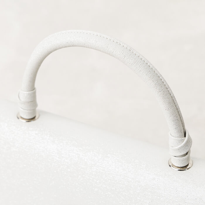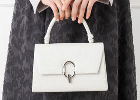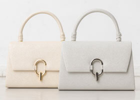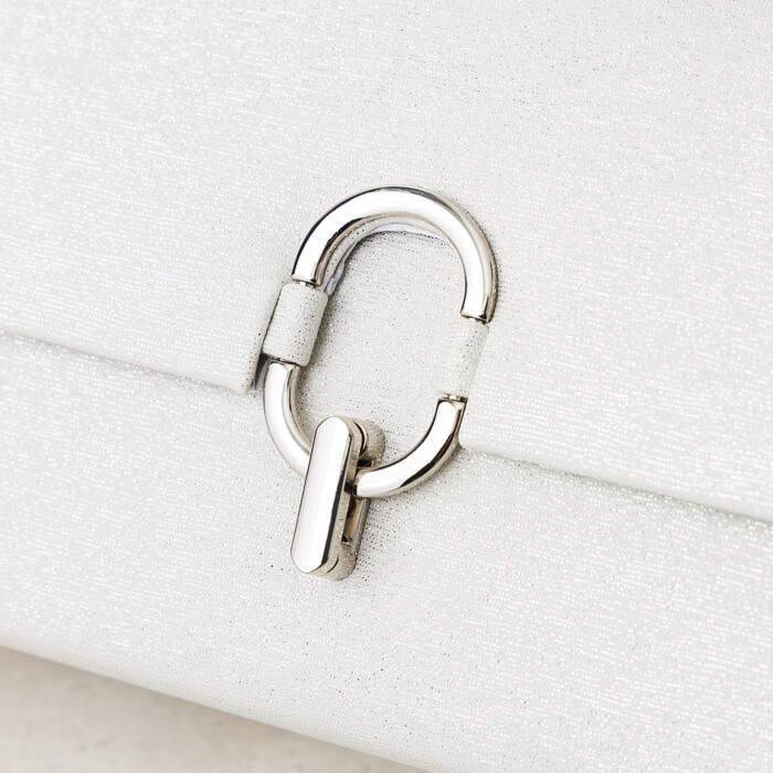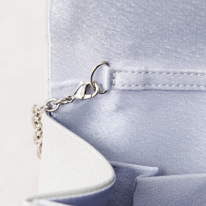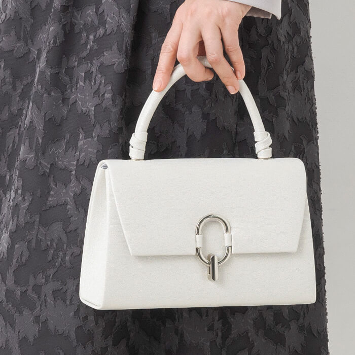 共生地の持ち手に、チェーンの持ち手が付属したフォーマルバッグ。