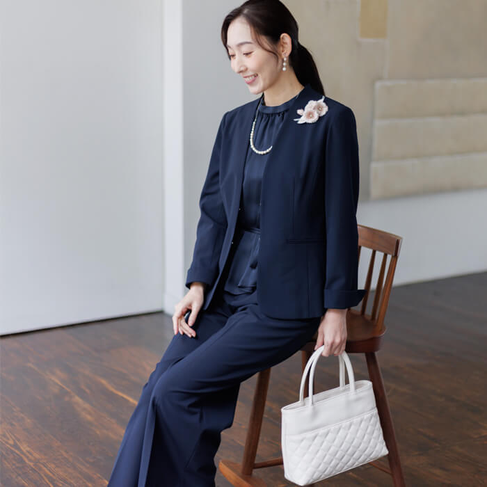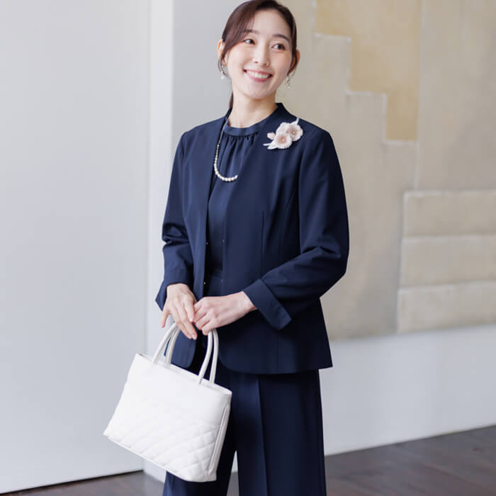 | その他 | ファスナー式開閉 /キャビネタイプ内ポケット×1 /スラッシュタイプ内ポケット×1 ※中国製 ※保管用の不織布巾着でお届けします。 ※モデル着用 ネイビーワンピーススーツ:4603950 / コサージュ:5503902 / ネックレス:5519933 / イヤリング:5552454 グレースーツ:4602950 / コサージュ:5503904 / ネックレス:5519933 / イヤリング:5552454 ネイビーパンツスーツ:4602950 / コサージュ:5503901 / ネックレス:5519933 / イヤリング:5551991 |