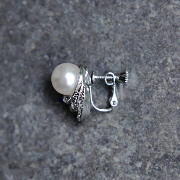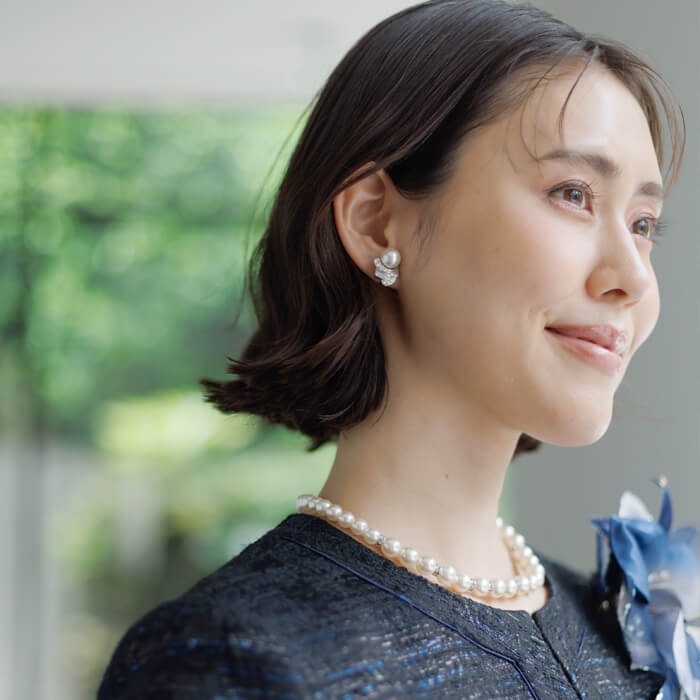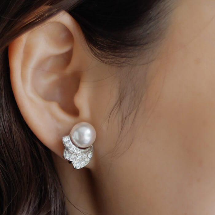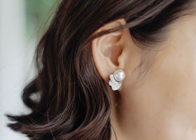 一粒パールの周りをストーンで彩り、華やかな雰囲気に仕上げました。