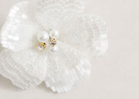 日差しを受けてきらめくビーズが軽やかな、フラワーブローチ。