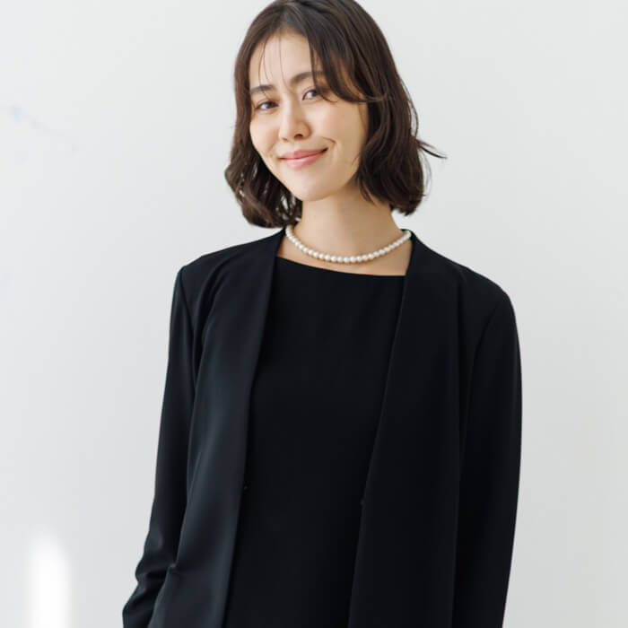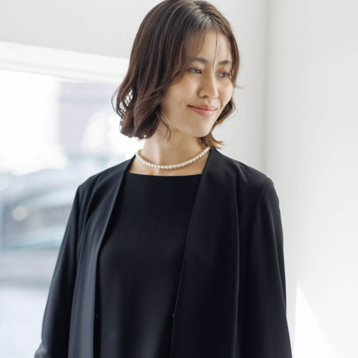 着脱がスムーズにできると人気のマグネットタイプのネックレスに、一粒パールのイヤリングをプラスすればおそろい感がアップして、よりきちんとした印象になります。