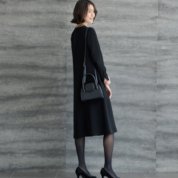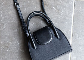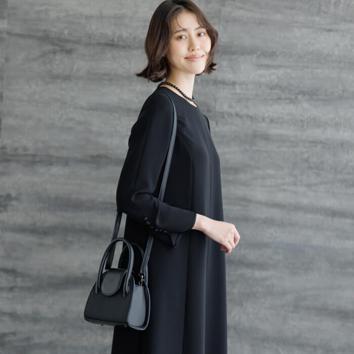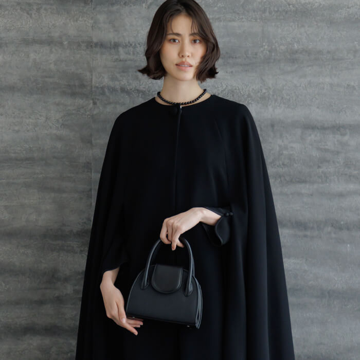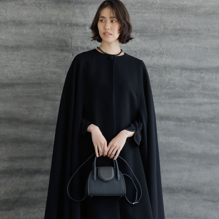 コンパクトサイズのポシェットは、フォーマルシーンだけではなく普段の装いにも。