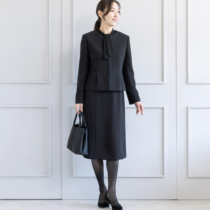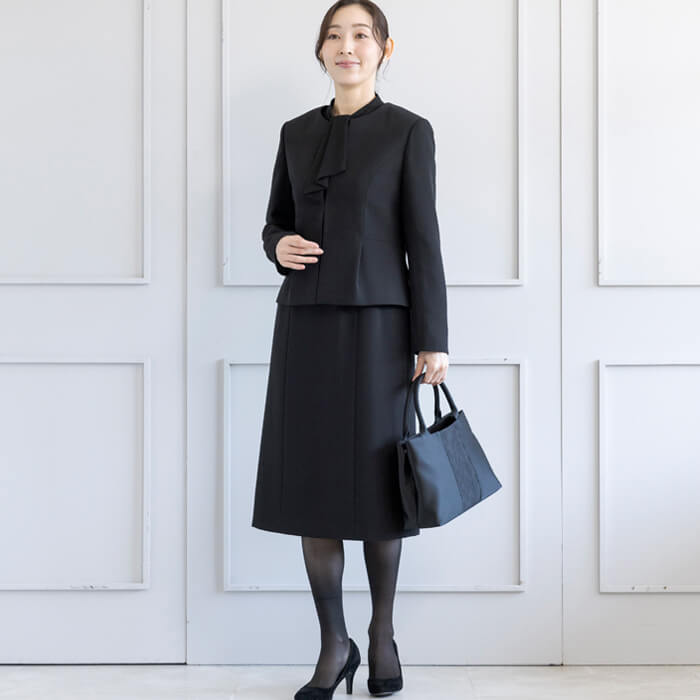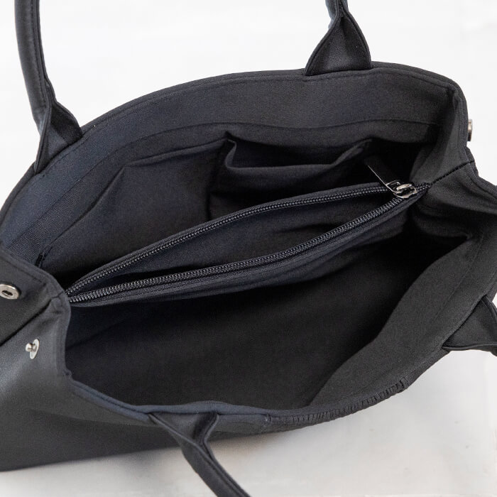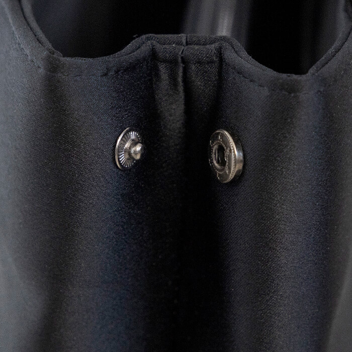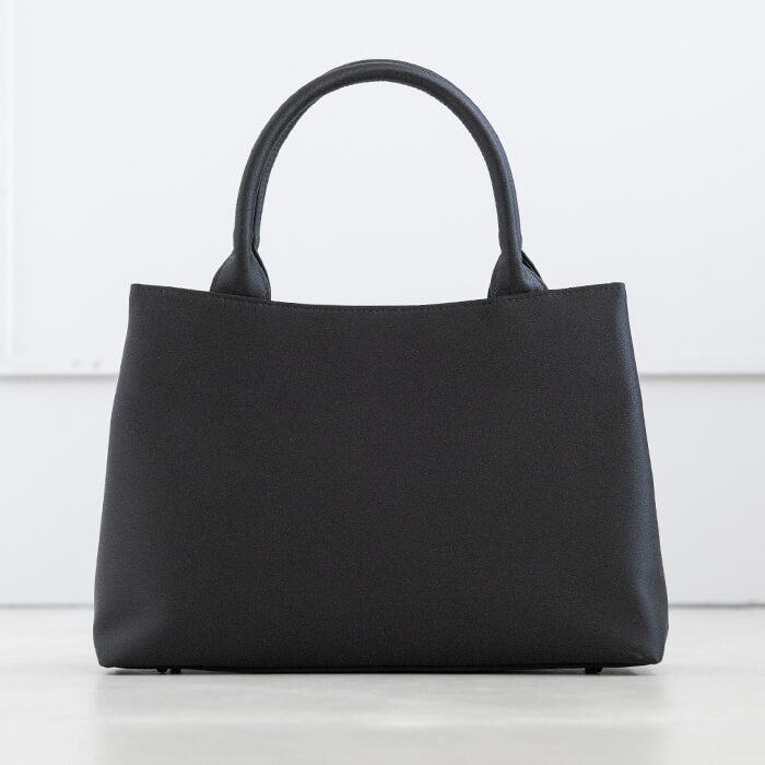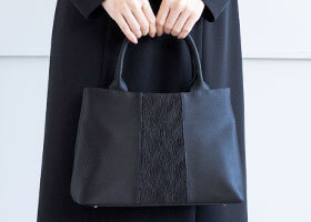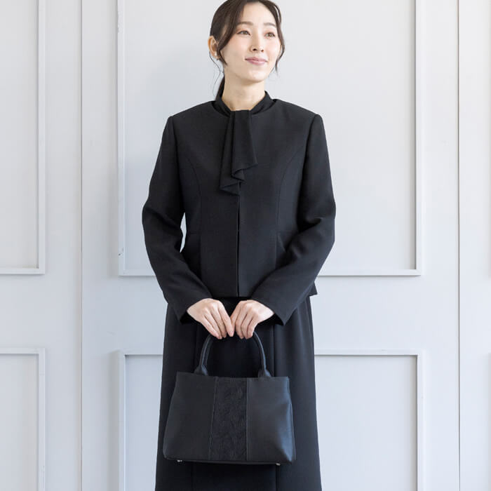 ファスナータイプ仕切りポケット、サイドスナップボタン付き、底鋲付き ※中国製 ※モデル着用 ブラックフォーマル:0103931 ※保管用の袋にいれてお届けします |