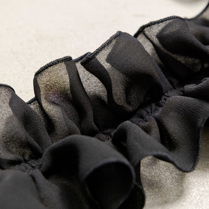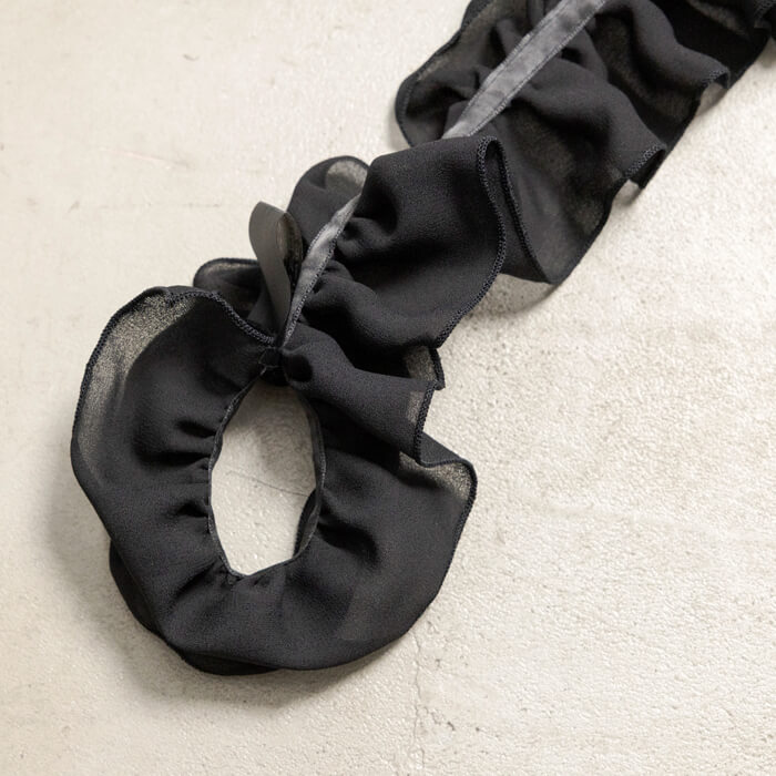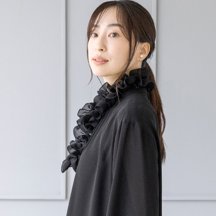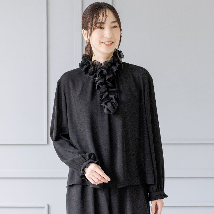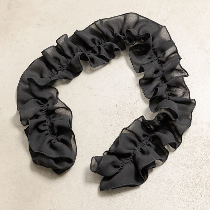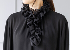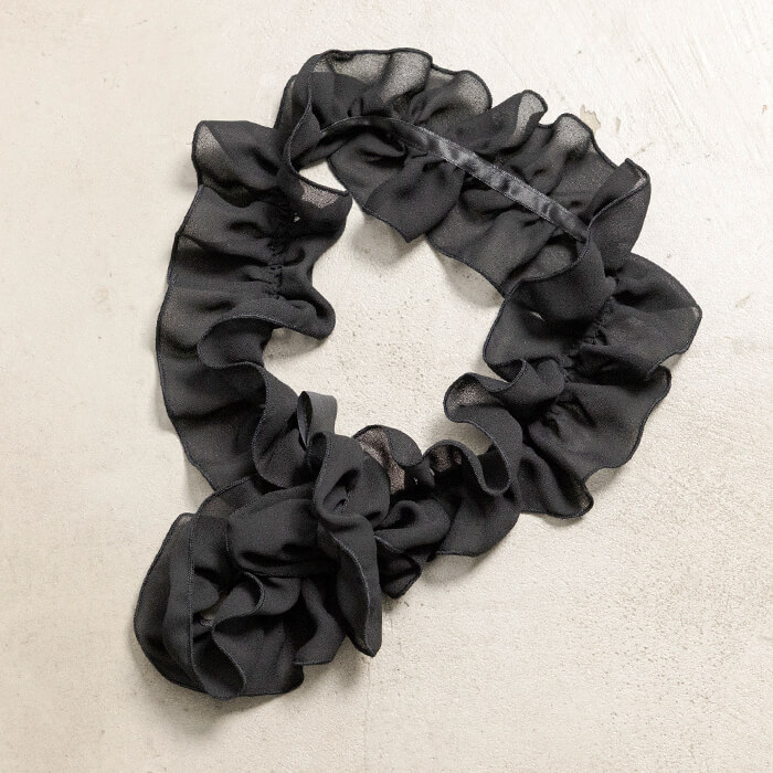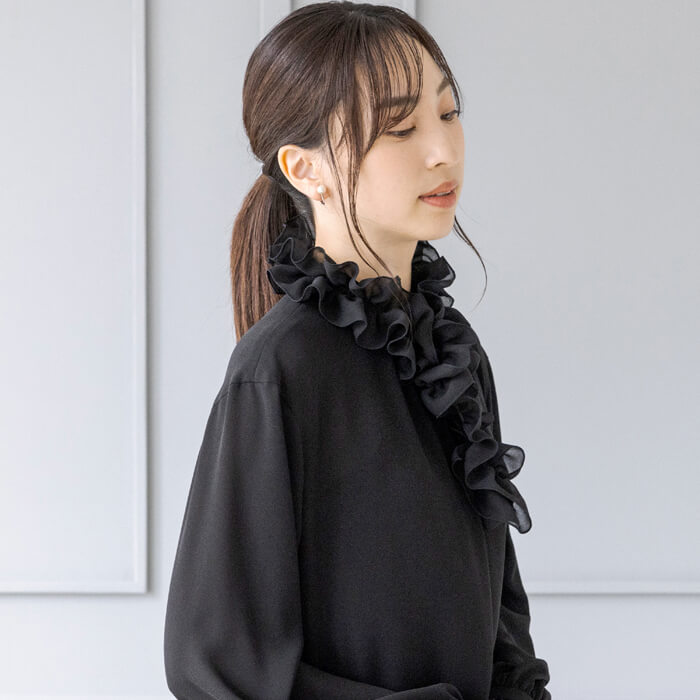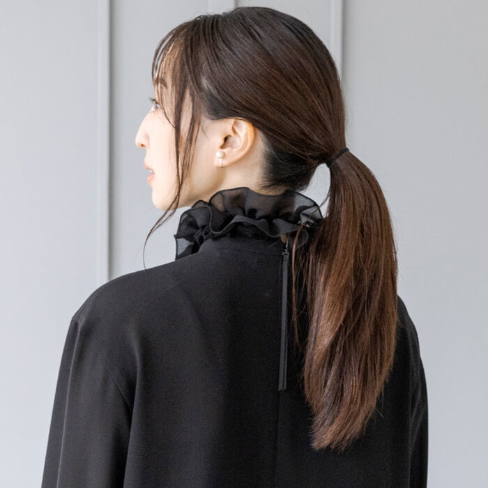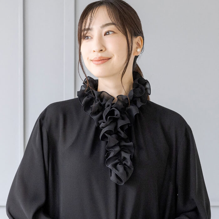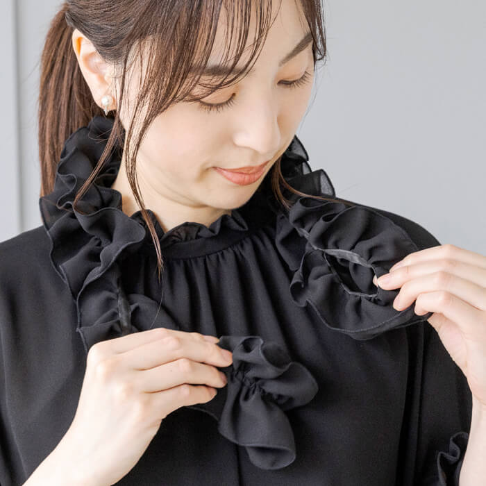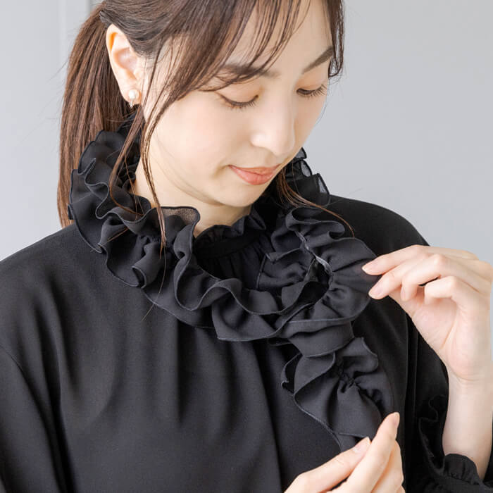 衿のようなデザインのフリルストールを身に着けることで、上手にカモフラージュしてくれます。
