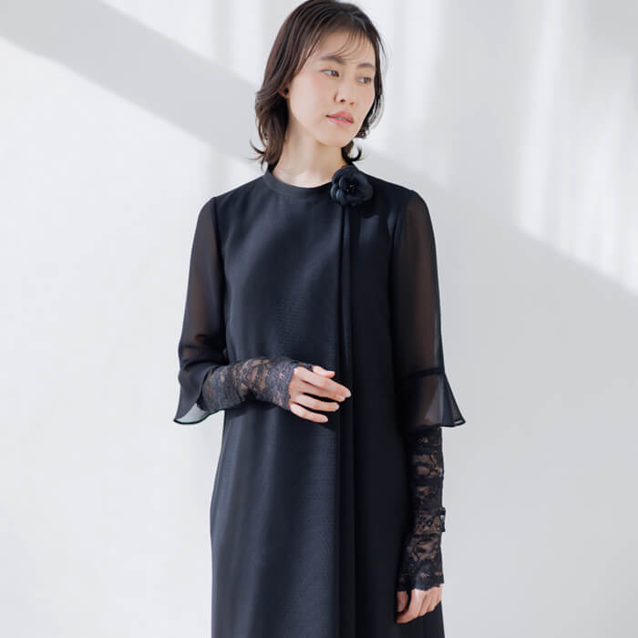 気になる手元をさりげなくカバーしながら、レースの透け感で軽やかな印象に。