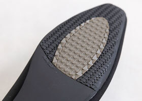 色々なところに気を配らなければいけないシーンも多いので、足元の不安を軽減できるよう靴の裏面にはすべり止め加工を施しました。