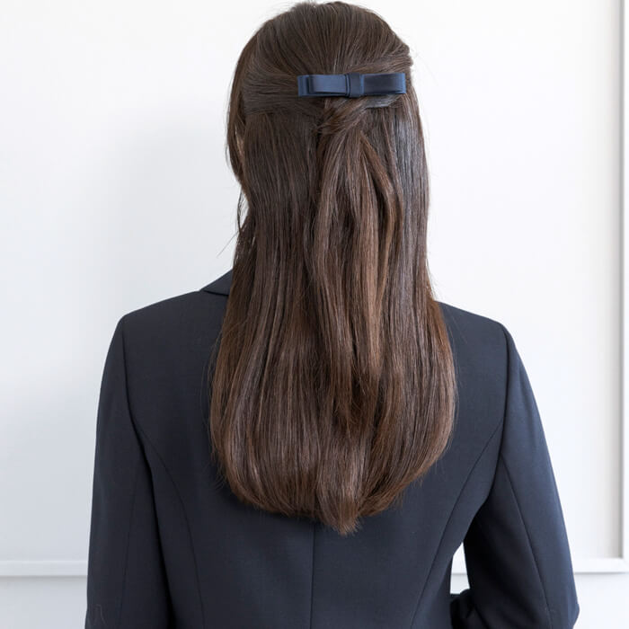 お辞儀をしたときに髪が乱れないよう、まとめておくと安心ですね。