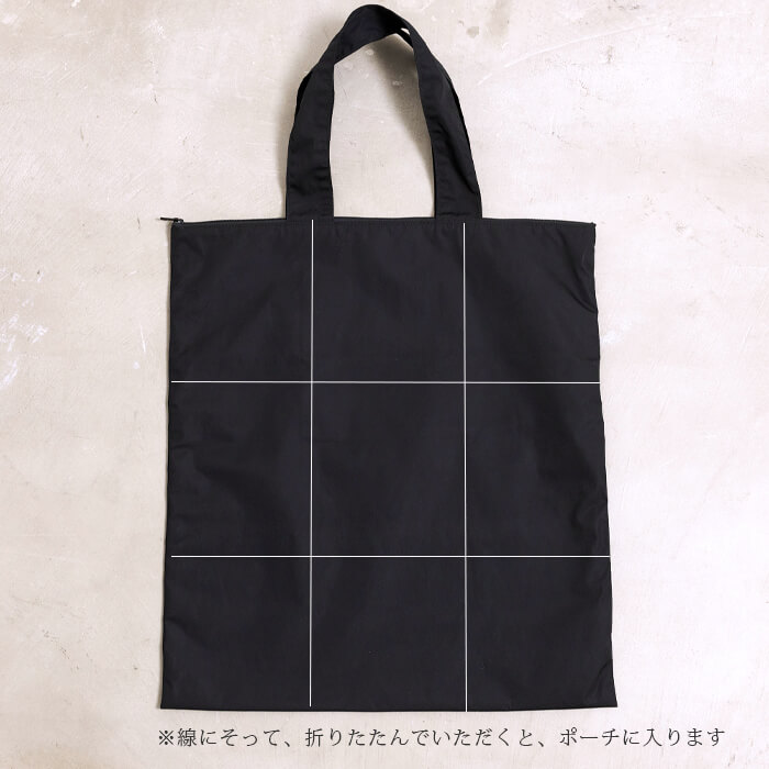 持ち手を内側にたたみ、縦横に三つ折りすると、コンパクトサイズに。
