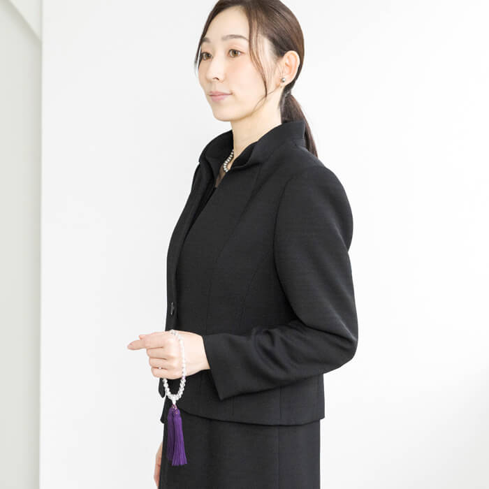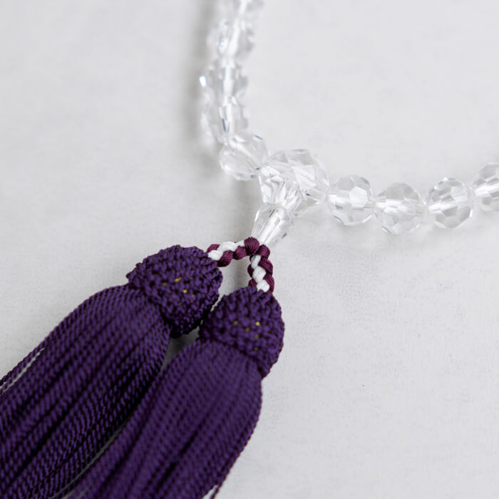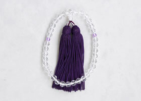 弔事の黒の装いに溶けこむ、クリスタルカラーの女性用お念珠。