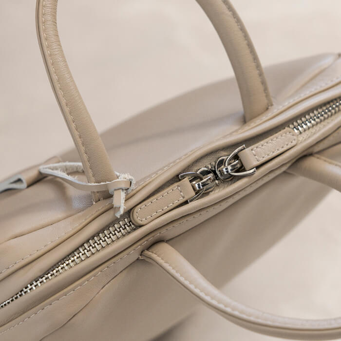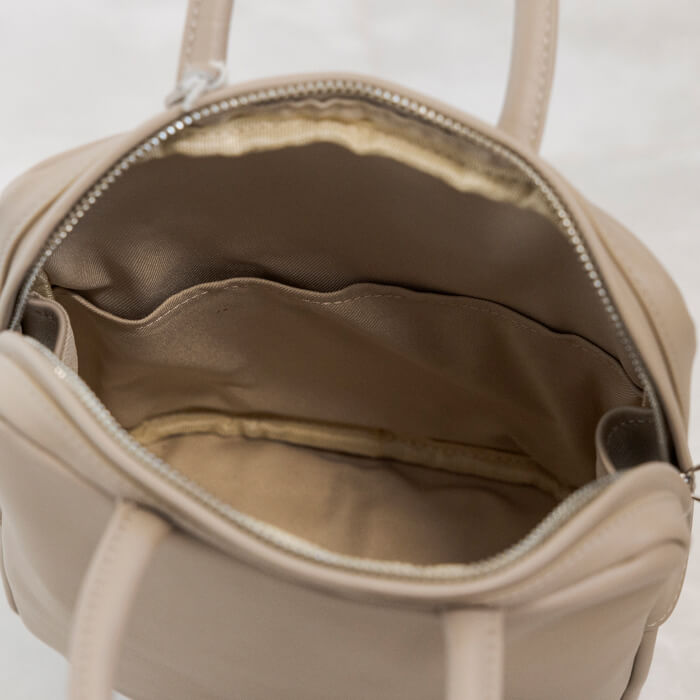 ダブルジップ仕様で大きく開き、バッグの中が見やすく取り出しやすいデザイン。