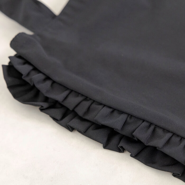 前から見ても後ろから見ても可愛らしい2段のフリル使い。国内の工房ならではの繊細な作りです。