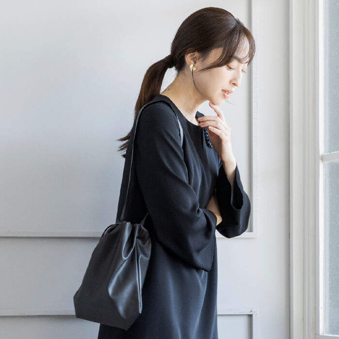 卒業式・入学式・結婚式などのセレモニーシーンはもちろん、きれいめなデイリースタイルにも合わせやすく、 コーディネートに程よい華やかさを添えるバッグです。