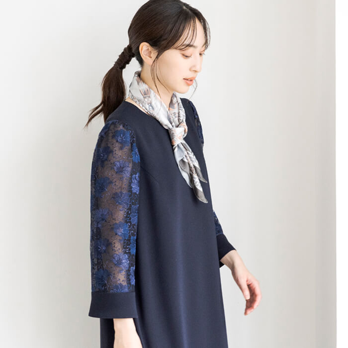 シルクの艶やかな光沢感がカラーリングに更に明るさをプラスしてくれるので、 コーディネートがぐっと華やかになります。
