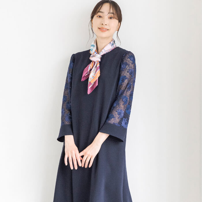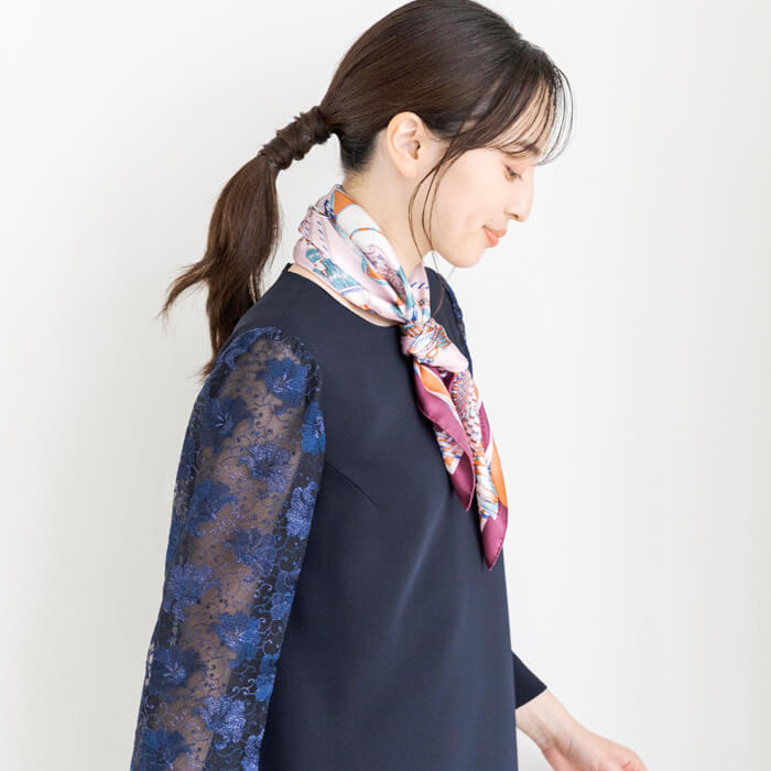シルクの艶やかな光沢感がカラーリングに更に明るさをプラスしてくれるので、 コーディネートがぐっと華やかになります。