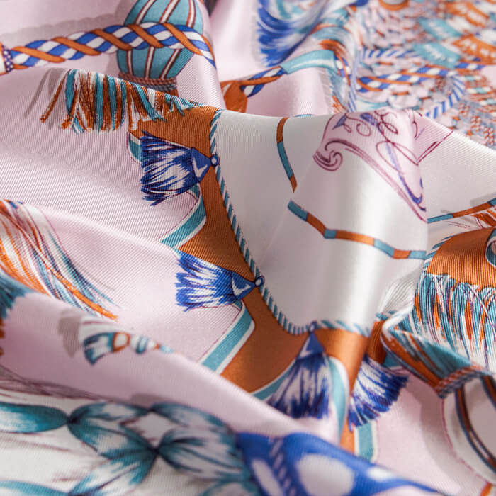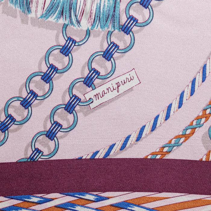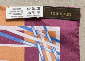 manipuriのスカーフは、日本の熟練職人が1枚ずつ手捺染し、端を手巻きで丁寧に仕上げております。