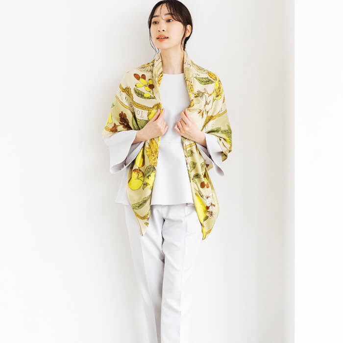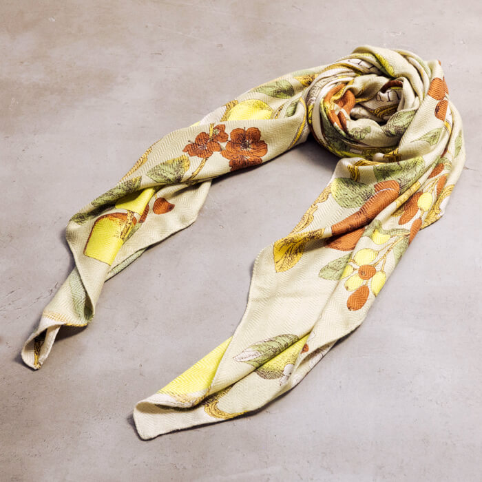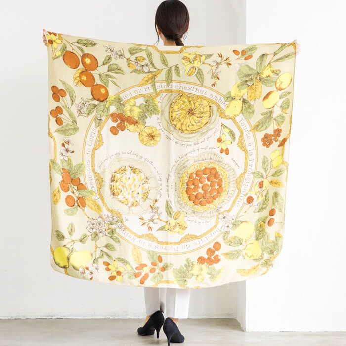 ヴィンテージスカーフからインスピレーションを得てつくられるスカーフやストールは、