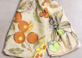 様々なフルーツや銀食器などからインスピレーションを得た柄で、どちらも甘い香りが漂ってきそうな柔らかい色合いです。