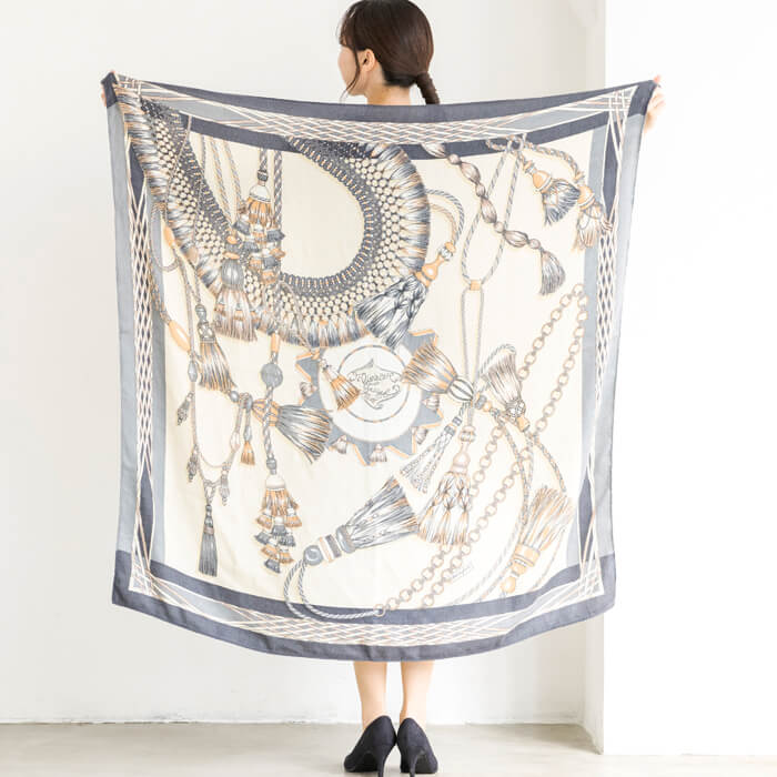 ヴィンテージスカーフからインスピレーションを得てつくられるスカーフやストールは、