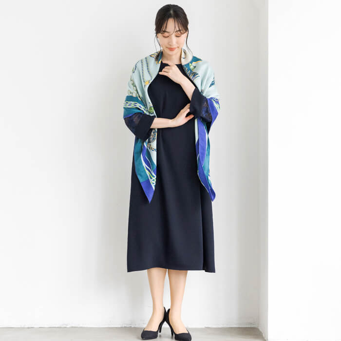 薄手で大判なストールは、ラフに首に巻いたり、肩に掛けたり、ひざ掛けにしたりとアレンジ自在。