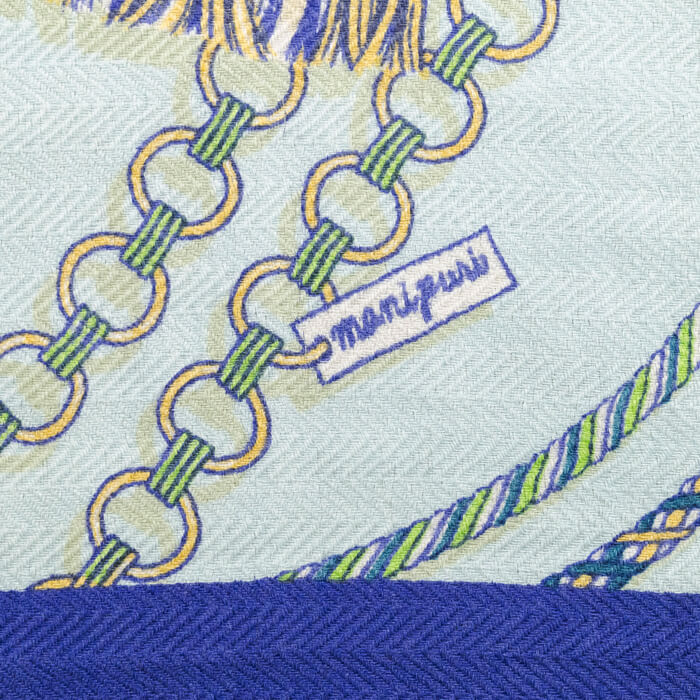 インド製のウール60%シルク40%の特注のヘリンボーン地に、manipuriのスカーフ柄が拡大プリントされた色鮮やかなストール。