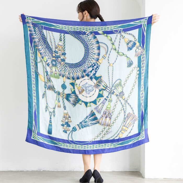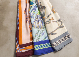 ヴィンテージスカーフからインスピレーションを得てつくられるスカーフやストールは、