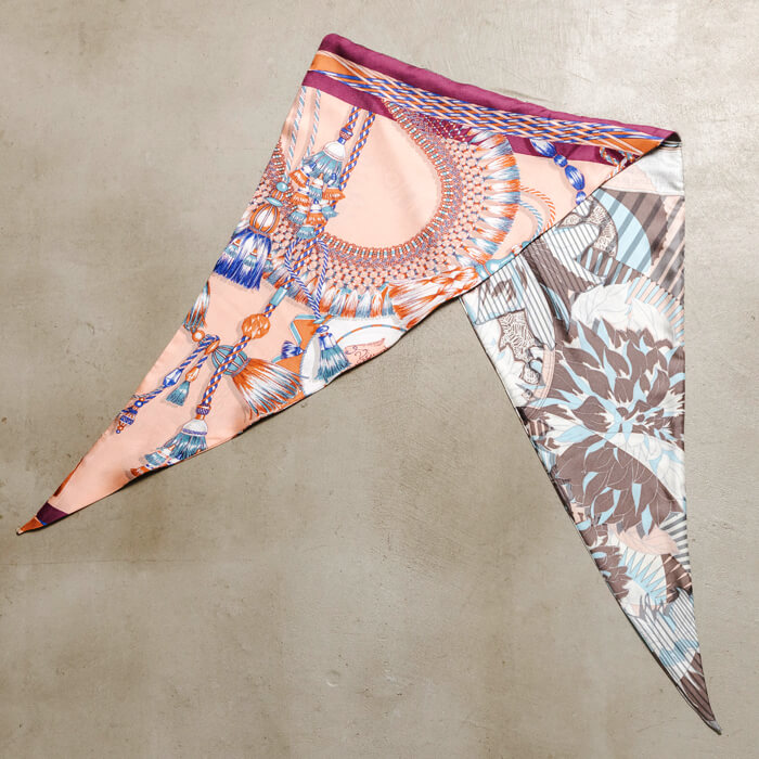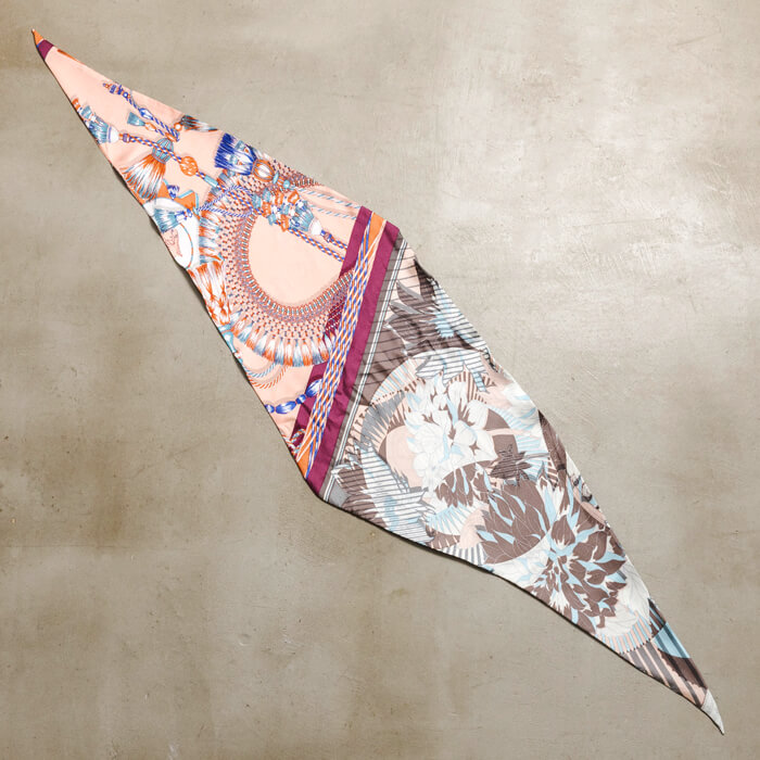 manipuriの人気の柄がミックスされたダイヤ型スカーフ。