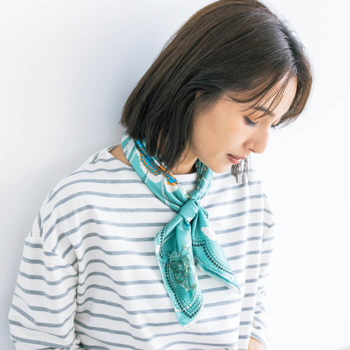 シルクの艶やかな光沢感がカラーリングに更に明るさをプラスしてくれるので、 コーディネートがぐっと華やかになります。
