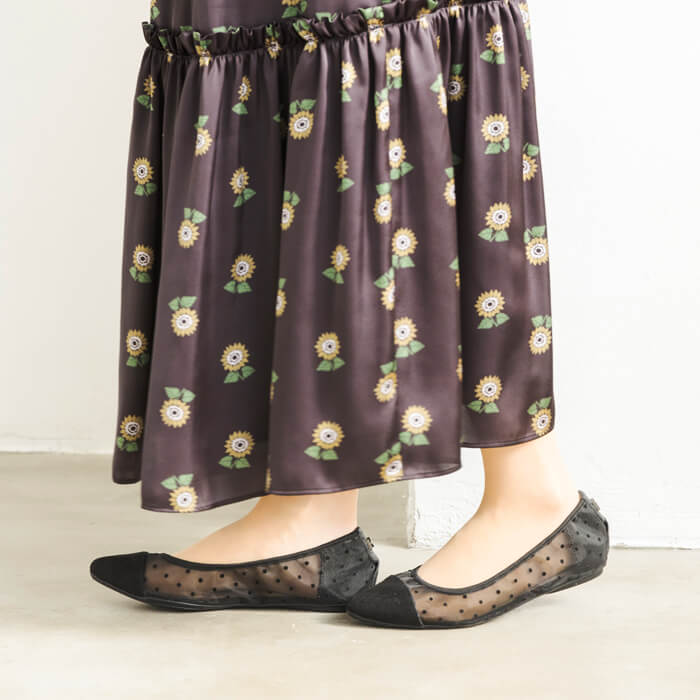 見た目にも涼し気な透け感のあるドット柄で足元から可愛い気分が高まります。
