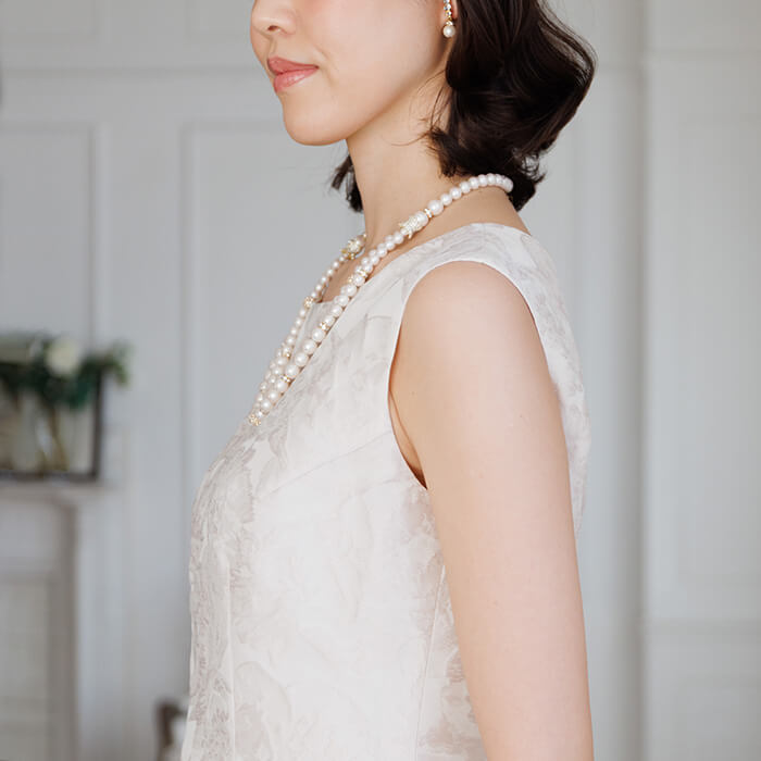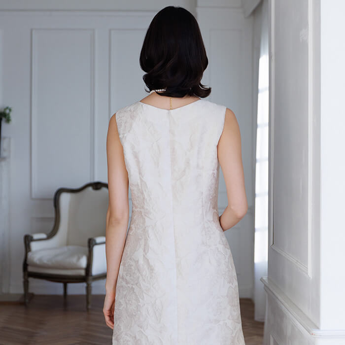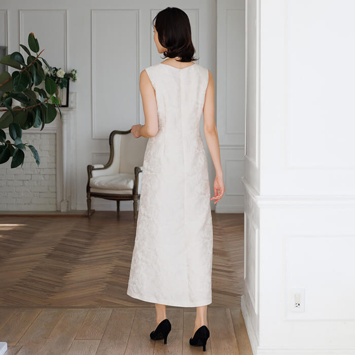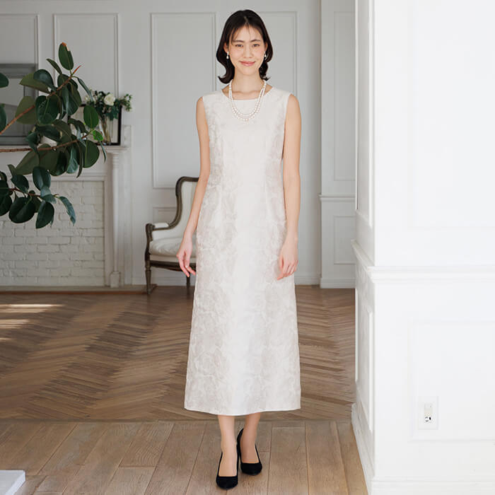 花柄ジャカードを全面に贅沢に施したドレス。上質感を味わえます。