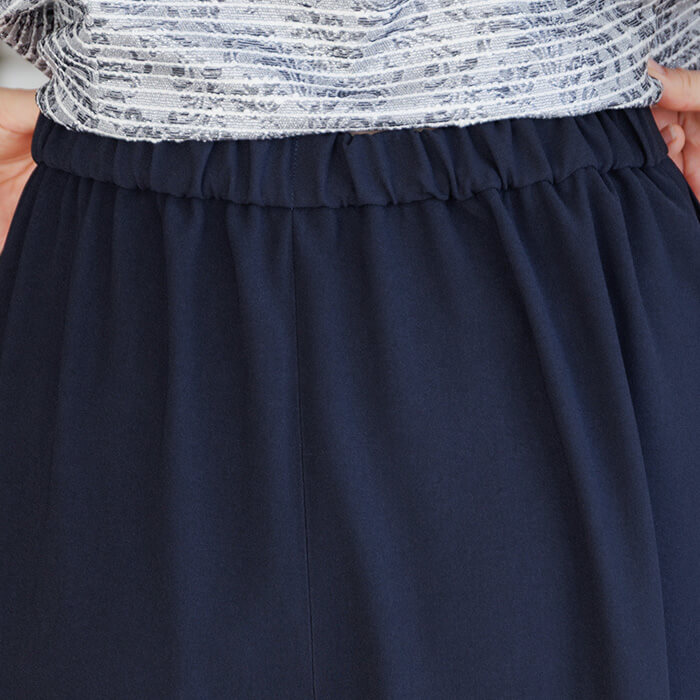 後ろのウエスト部分はゴム仕様で、身体を締めつけない快適な着心地で長い時間もゆったりと過ごせます。