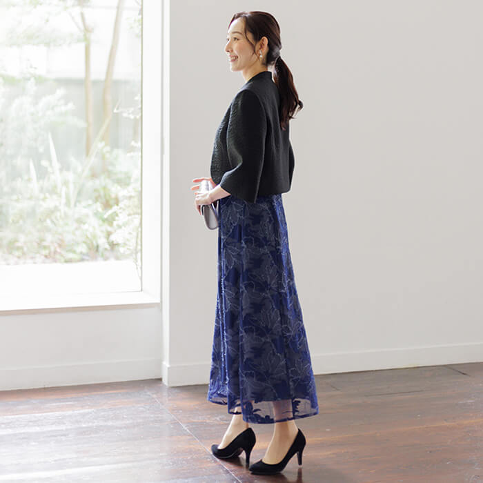 袖は七分丈で肘をしっかり隠し、手元を綺麗に見せます。