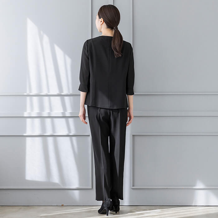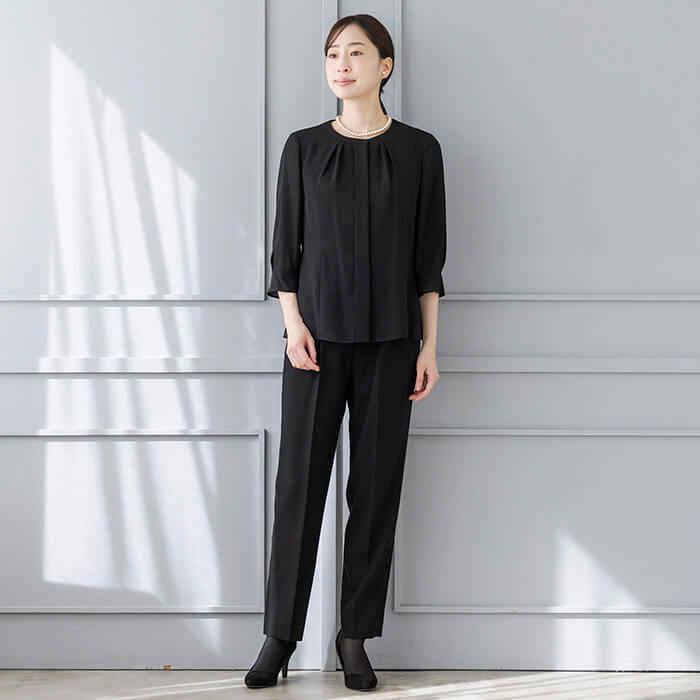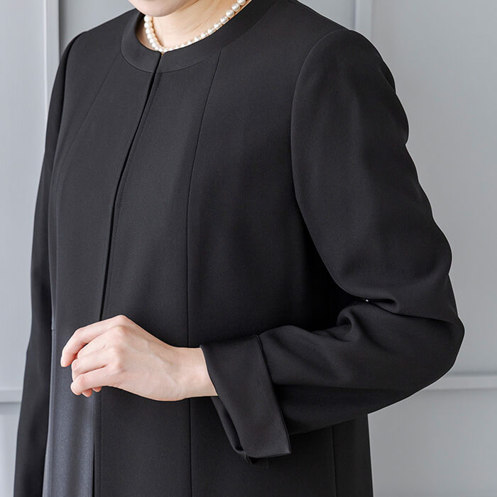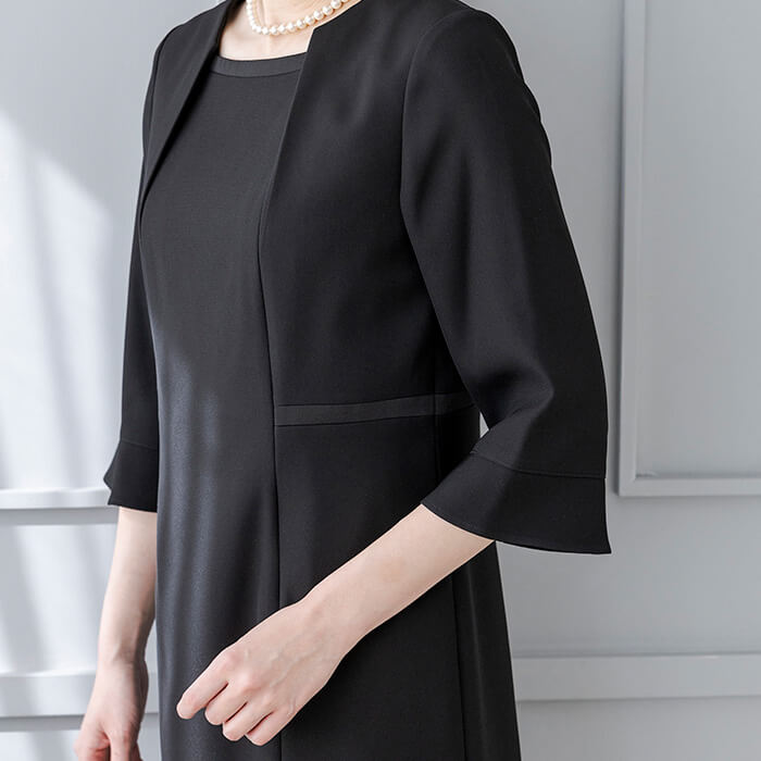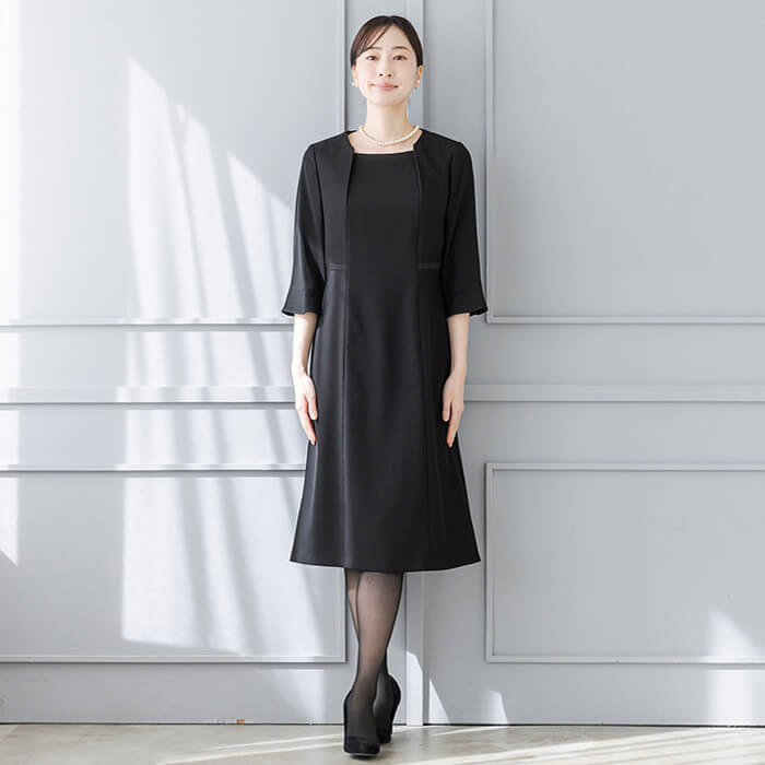 一般のご葬儀におすすめの装いです。ミセス(40代〜)向けの「少しゆったりパターン」を使用。 「標準」に比べてウエストを中心にゆとりを持たせています。