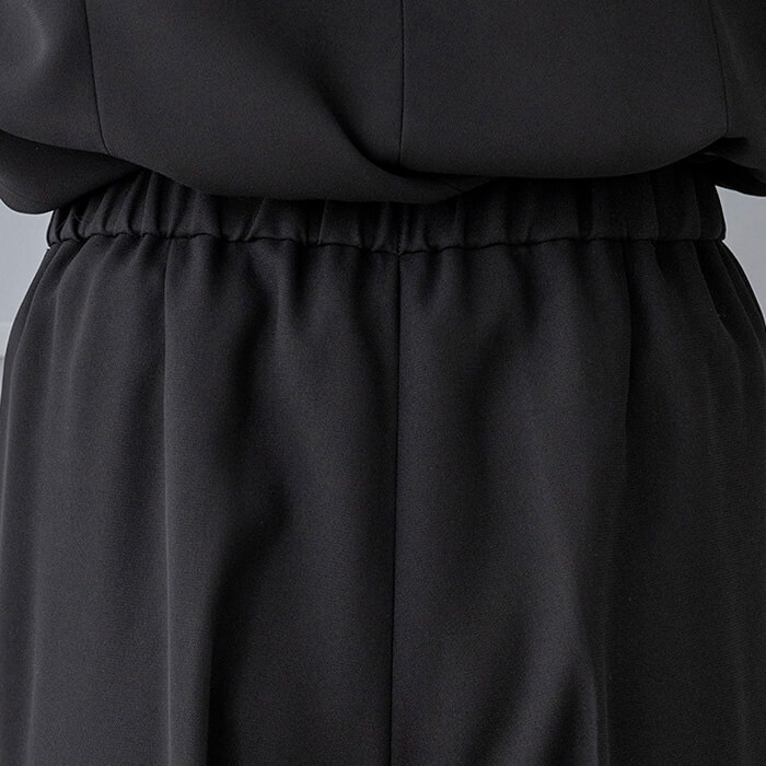 パンツの後ろウエストはゴム仕様。伸縮性を持たせたストレスのない着心地がポイント。