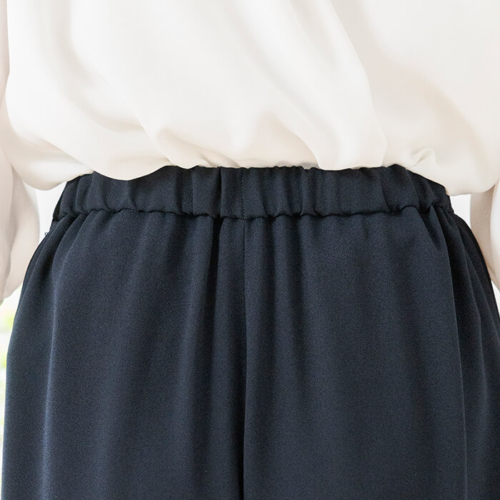 洗濯方法:ご自宅でお洗濯可 ウエストゴム仕様(+19cm伸長) 左脇ファスナー 右脇ポケットつき ※モデル:身長165cm 9号着用 |