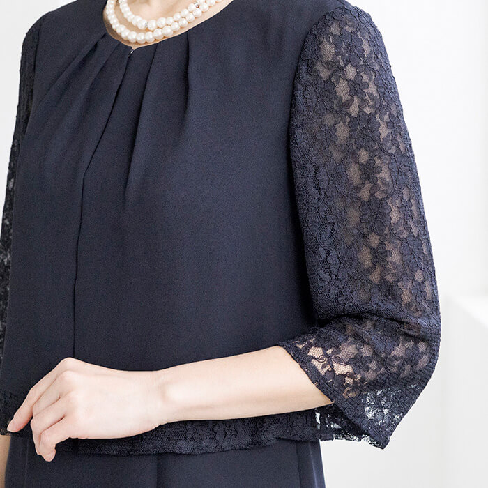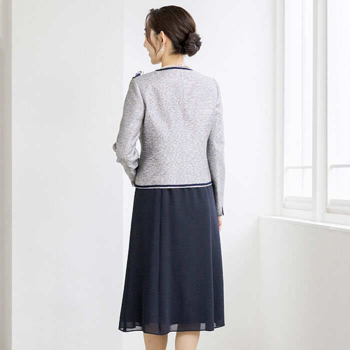 洗濯方法:クリーニング 袖口スリット入り(折り返し可) ※モデル着用: イヤリング / 5552454-91 ネックレス / 5519810-10 コサージュ / 5503106-73 ビーズバッグ / 5522915-91 レザーバッグ / 5820301-00 バッグ(黒) / 5620395-00 コサージュ(画像1枚目〜3枚目) / 5503988-73 ※モデル:身長167cm 9号着用 |