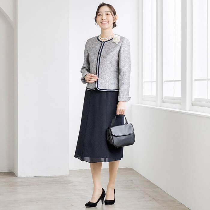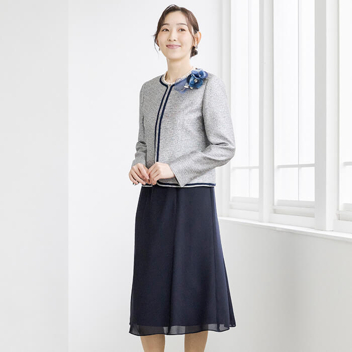 結婚式やお顔合わせ・七五三などのお祝いのシーンや式典など、1年中活躍します。パターンは「少しゆったり」タイプを使用。「標準」に比べてウエストを中心にゆとりを持たせています。