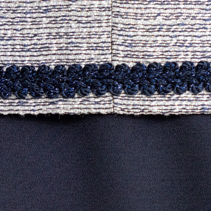 縁取りしたブレードがアクセントになり、ジャカード素材をより引き立てます。
