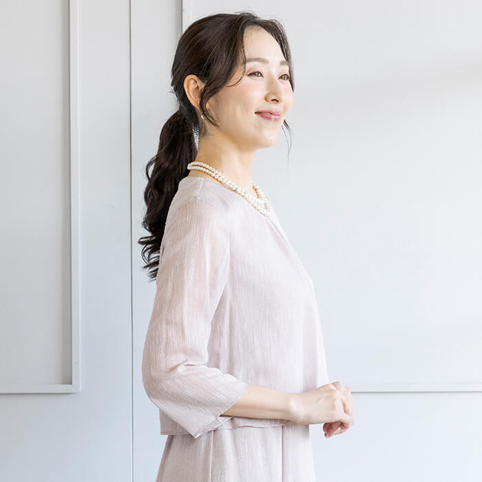 寸法はミセス向けの「少しゆったりパターン」。 「標準」に比べてウエストを中心にゆとりを持たせています。 ワンピースのみ、ご家庭でお洗濯できるウォッシャブル。 ウォッシャブルフォーマルのお洗濯方法 をご覧ください。